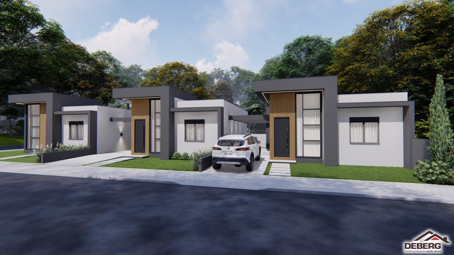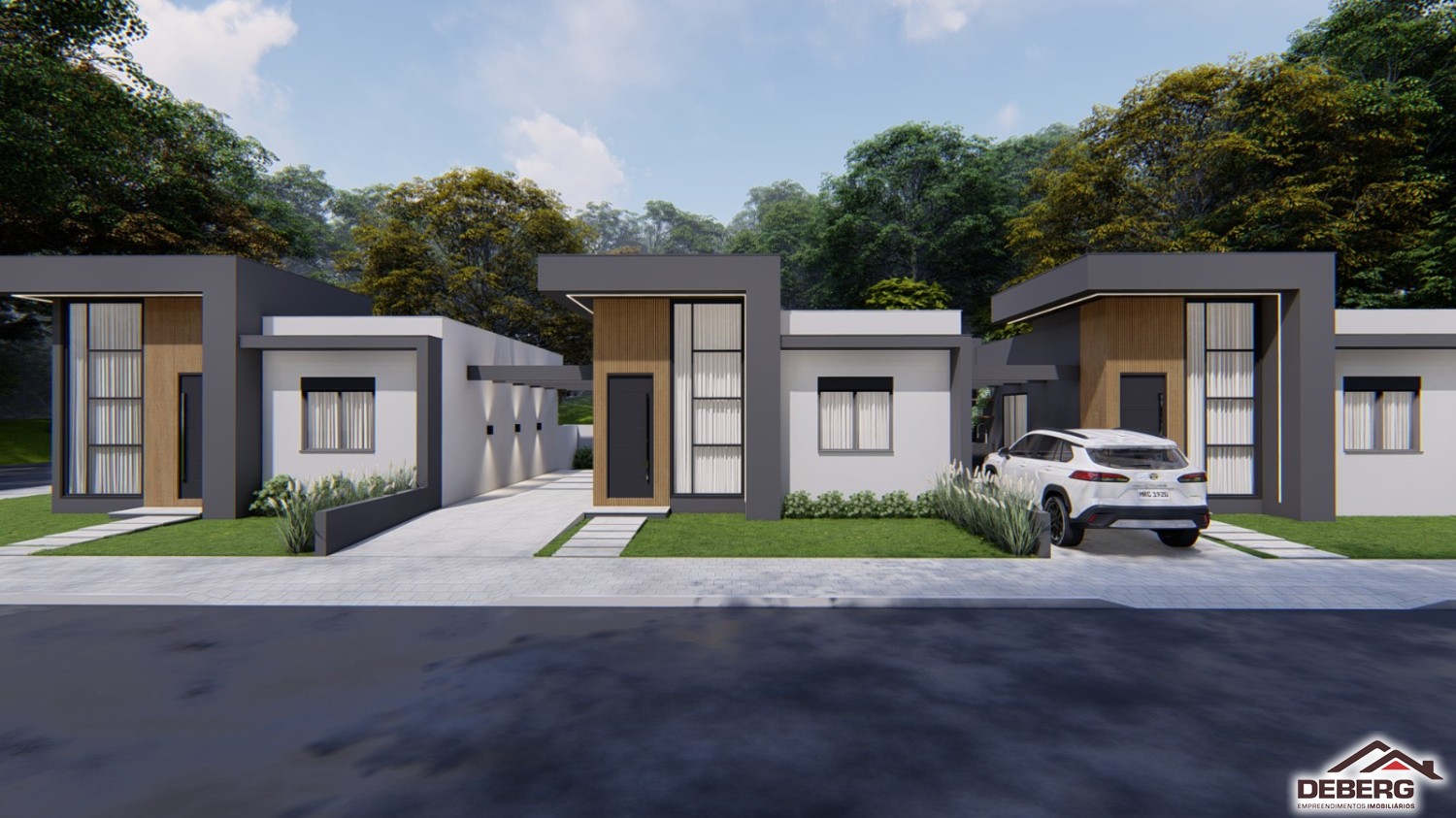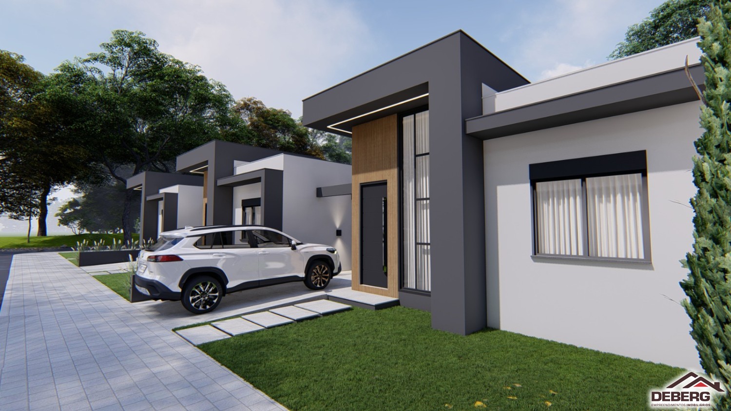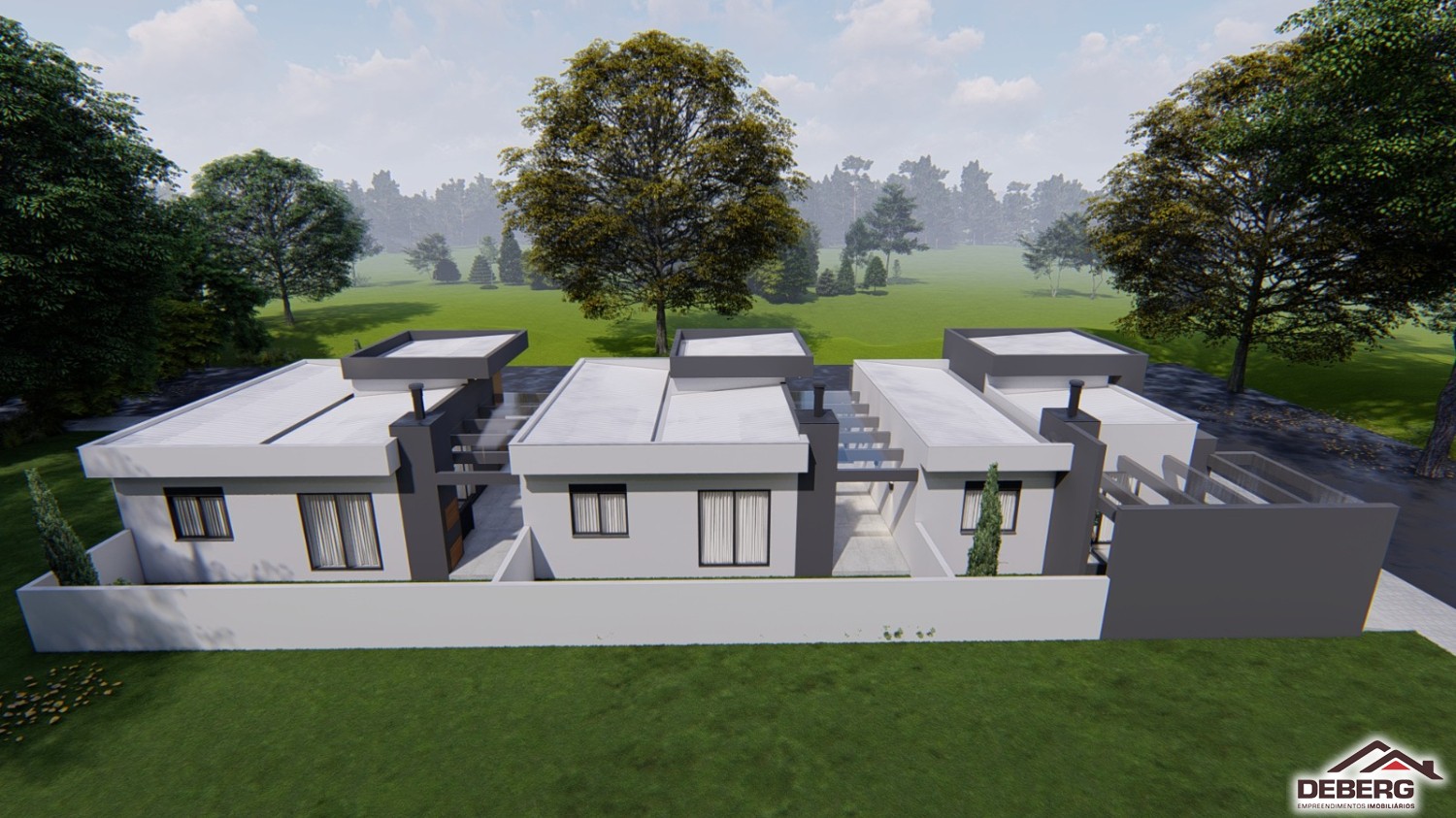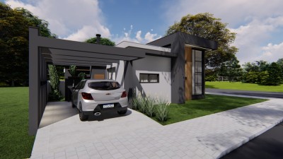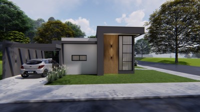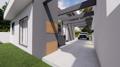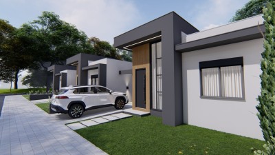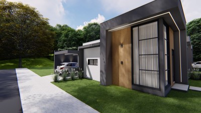 Descrição › Casas geminadas individuais, pergolado de concreto, pé direito alto, entrega 05/2026