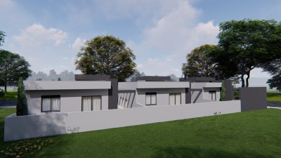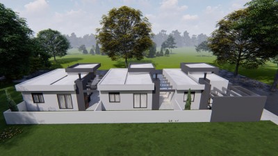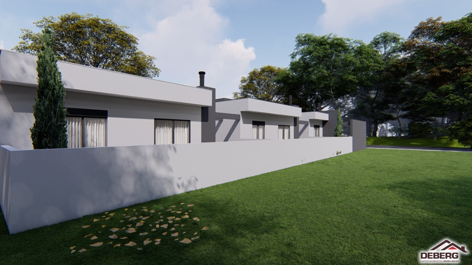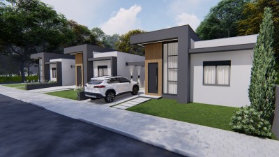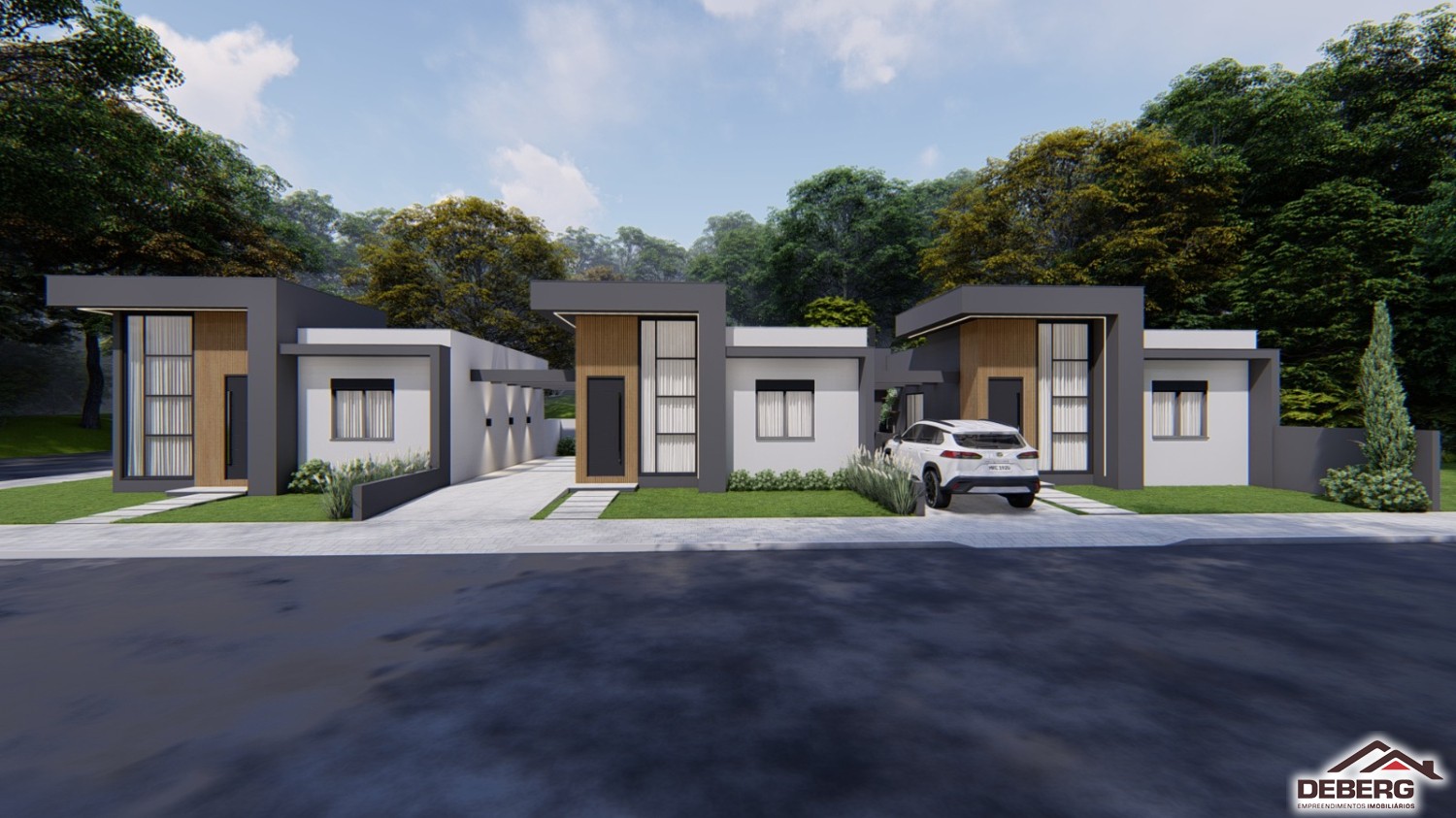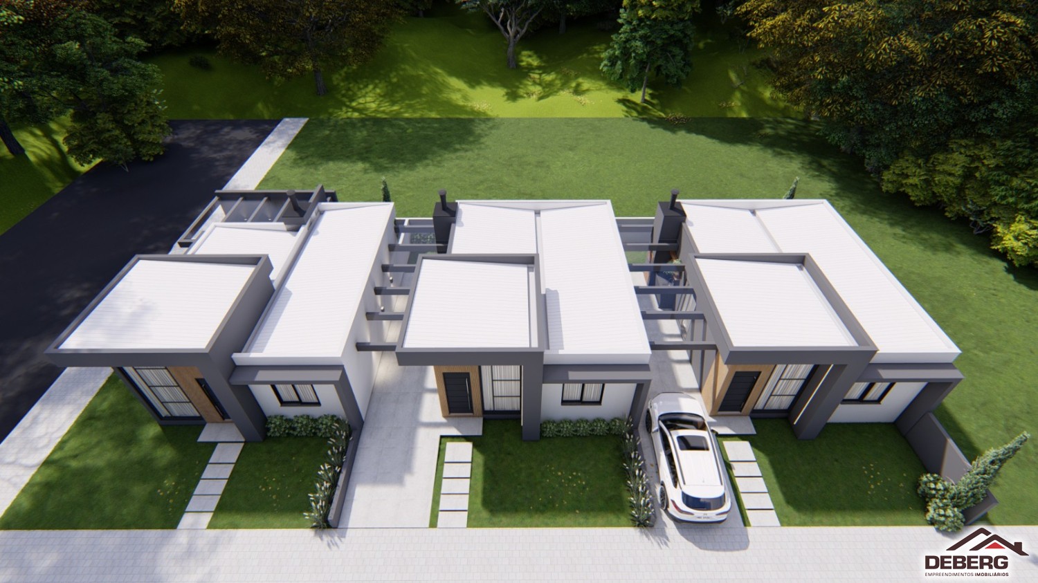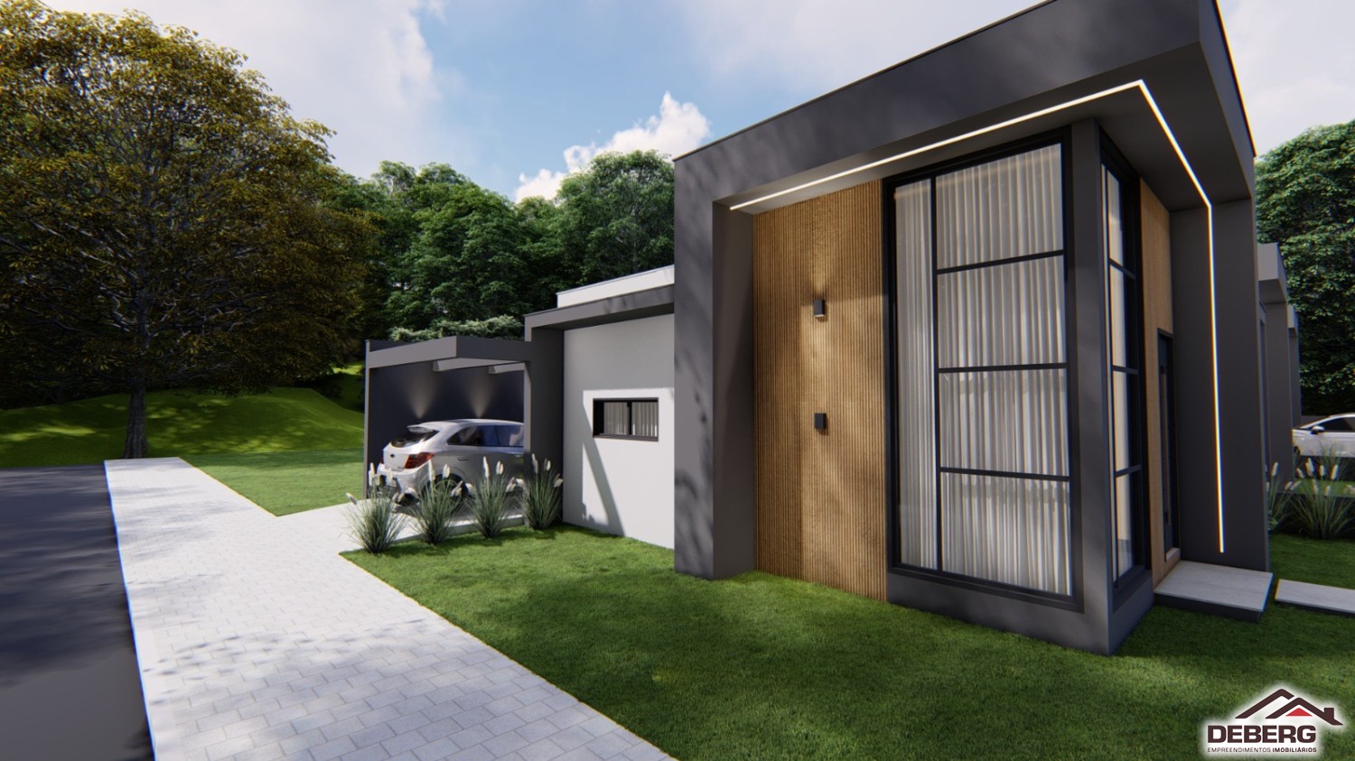 Descrição › Casas geminadas individuais, pergolado de concreto, pé direito alto, entrega 05/2026